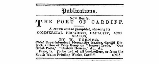 Volume One - Into the Victorian Age - The dock extension of 1883 . . . How they managed to swing them is beyond me. The ships were all of large size - only one little schooner among them - so far as I could see. Every tip was occupied; one large four master enjoying the privilege of three. The little bit of extension cut out seems to me utterly inadequate for the present business, to say nothing of the probable increase. It is like adding an attic to a large house. Few of these vessels seemed less than a thousand tons register. The 'four-master' very likely double that, and to carry 3,000 to 4,000 tons of coal away. I am credibly informed that—space for space—there is even less at Cardiff Docks than at Penarth. To relieve this congestion, I would suggest that Barry Dock be made at once - say in a fortnight — and placed on the West Mud. That arrangement would probably meet the exigency for a short time, and plans for another dock could be got ready.' — I am, &c., 11th June, 1881. VISITOR. - South Wales Daily News [325] [361] 13th June 1883.