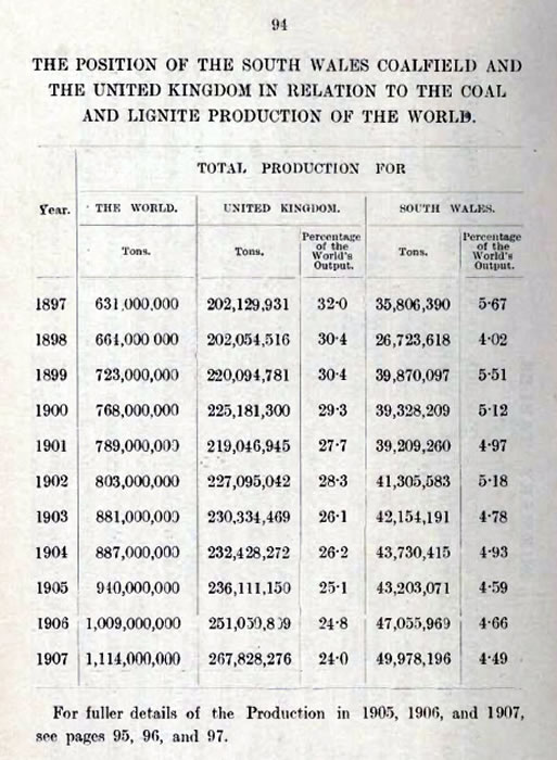 The coal table from the 1908 South Wales Coal Annual showing the part that South Wales and Penarth played in the World energy requirement for fossil fuel. [039] |