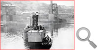The above images feature in the book “A Taff Vale Railway Miscellany” by John Hutton [030] who states that the photograph shows the lowering of the diving bell for inspection of the roller path for the pontoon. The image below is of the “Magnet”. Its diving bell was used for inspection of dock equipment such as lock gates and for maintenance purposes. The pontoon didn't have a roller path but the lock-gates did, so I think this is a misunderstanding here. |
