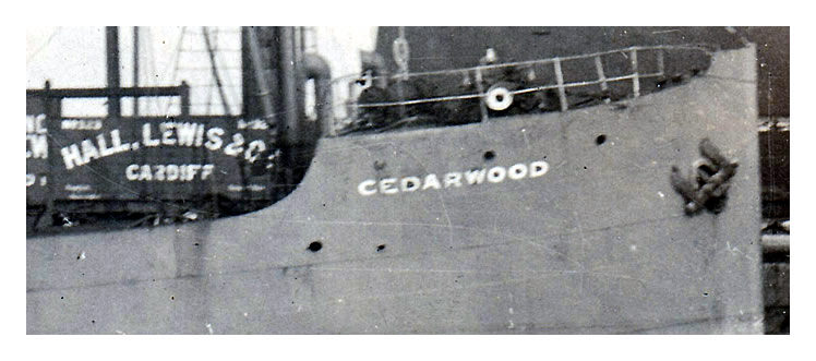 s.s. 'Cedarwood' as photographed by George Wehrley whilst moored at coal tips, numbers 19 and 20, within the main Penarth Dock. The original, a rather faded image, is the second from the top, the other images have been enhanced.