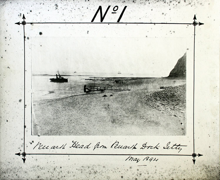 May 1894 - No 1 - 'Penarth Head from Penarth Dock Jetty.' Note the stone pitching at the right of the photograph and the mobile landing stage for the 'Penarth Ferry'. A photograph held within the Glamorgan Archive at Cardiff.