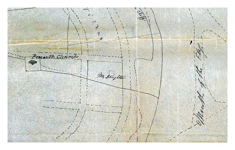The original sketch plan is extremely difficult to read, hence, I have digitally enhanced the plan and enlargements to enable the text to be deciphered. To my best knowledge, these plans, however, did not materialise and a revised location and layout was realised in 1903, nearly fifty years later! The original sketch plan is held at the Glamorgan Archives. [Glamorgan Archives Reference : DPL-812-10] [599]