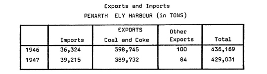 Volume Twelve - Pre-Victorian to the Present Day - further aspects - A History of Penarth Dock by Roy Thorne . . . Chapter Seven - 1945 to the final closure in 1962 At the end of the Second World War there was no temporary prosperity as there had been after 1918. Our country had exhausted its resources through six years of war, and the overseas demand for Welsh coal had declined as these figures show [203] : -
