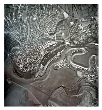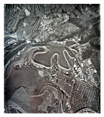 18th March 1968 - Image 0064 - This high level pass was taken by the RAF of the meandering River Ely and route of the railway past the Grangetown Gas Works with the Ely Tidal Harbour and western end of Penarth Dock visible. The photograph was not duplicated too well by me hence it is of lower resolution!