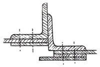 To place the Dock on an even keel, water will have to be run into the outer compartments until it floats at a draught from 3' – 6” to 4' – 0”, and the extension will have to be ballasted to produce the same draught. Something may be done by slightly tipping the Dock backwards, so that the draught at the joint is reduced, ballasting the extension to the same angle. The extension must therefore be fitted with a longitudinal bulkhead about 4 ft. high, which must be watertight. It may also be noted that since the Dock has now tipped forward, it can again be tipped backwards by pumping, so putting a further strain on the bottom of the joint. Note. It looks as if an elastic packing would be best, injection only being resorted to if the bolts fail to make the joint tight. Since the extension in the complete Dock becomes part of the outer compartment of the Pontoon, communication will have to be established through the bulkheads. |